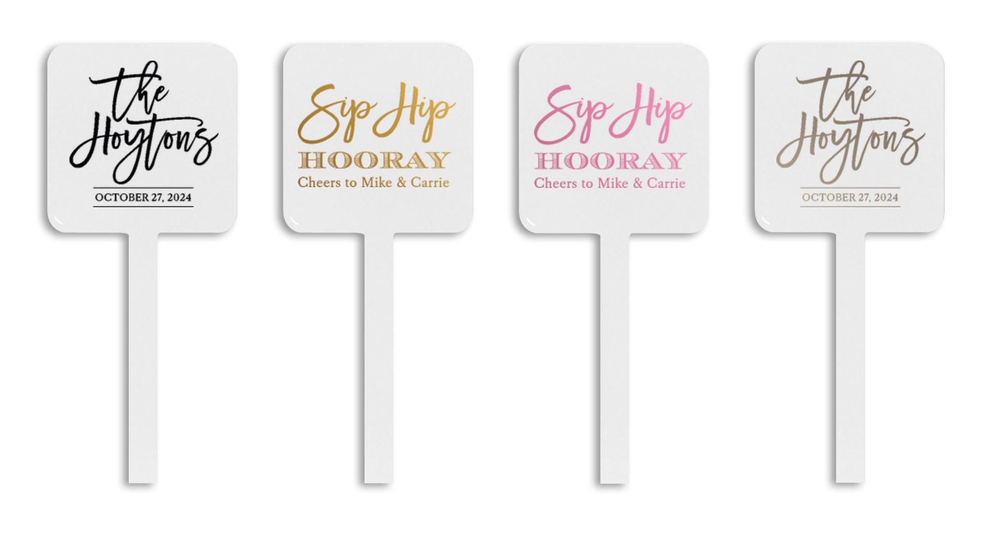 Make your drinks as memorable as your event with our custom drink stir sticks! Perfect for weddings, parties, bridal showers, or corporate events, these stir sticks add a polished and personalized touch to cocktails, coffee, or mocktails.