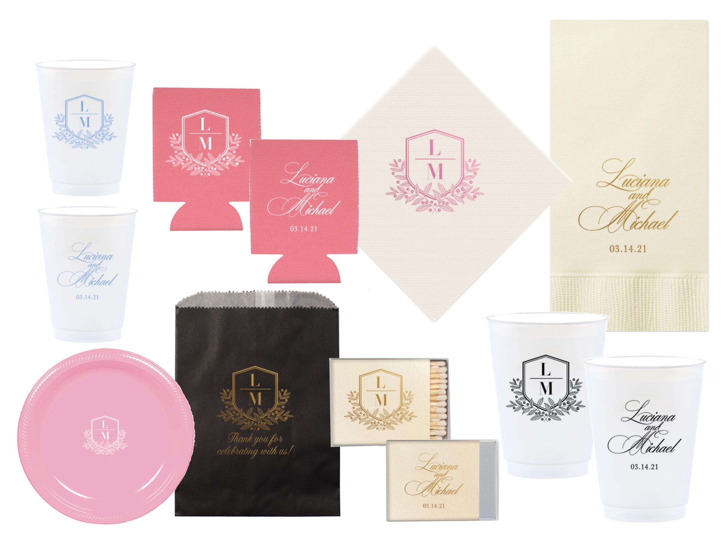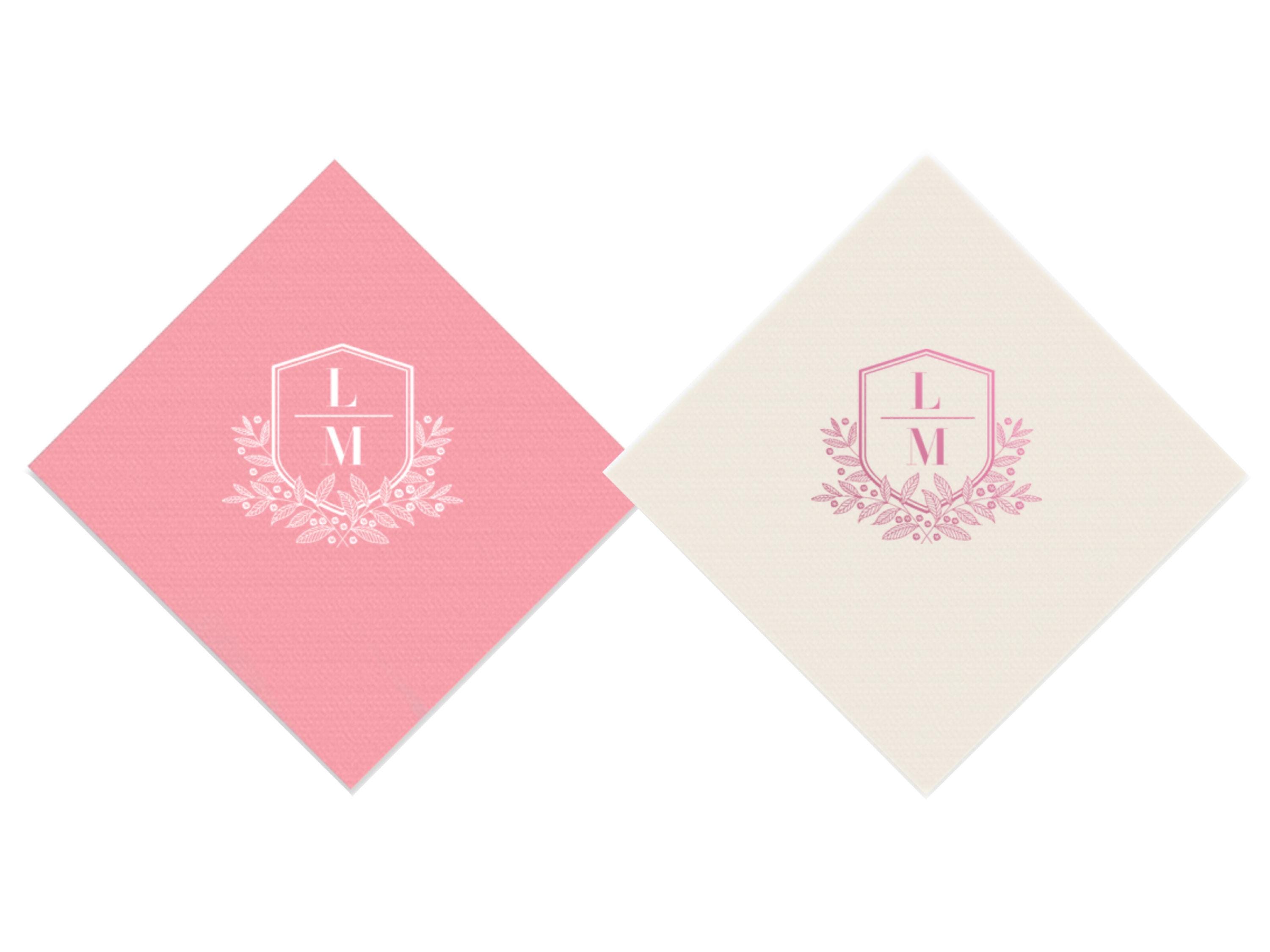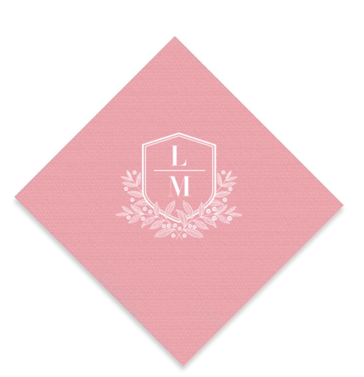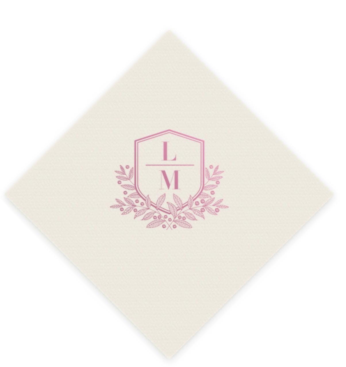 Soft linen like air laid cocktail napkins printed with a crest monogram and your initials, perfect for weddings, showers, birthdays, and upscale events. Elevate any celebration with our linen like custom cocktail napkins, soft and substantial and beautifully printed for weddings, showers, birthdays, graduations, holiday parties, corporate events, and everyday entertaining. Personalize with names, a monogram, a date, or a short phrase in your choice of ink or foil to create a polished and upscale detail guests will notice.
