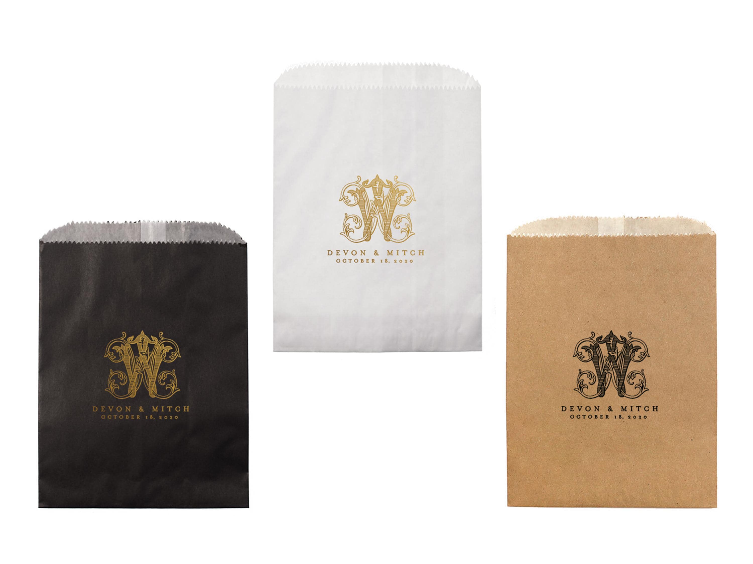 An easy, elegant way to send guests home with cake slices, cookies, or small favors. Choose your bag color, wording, and ink/foil.