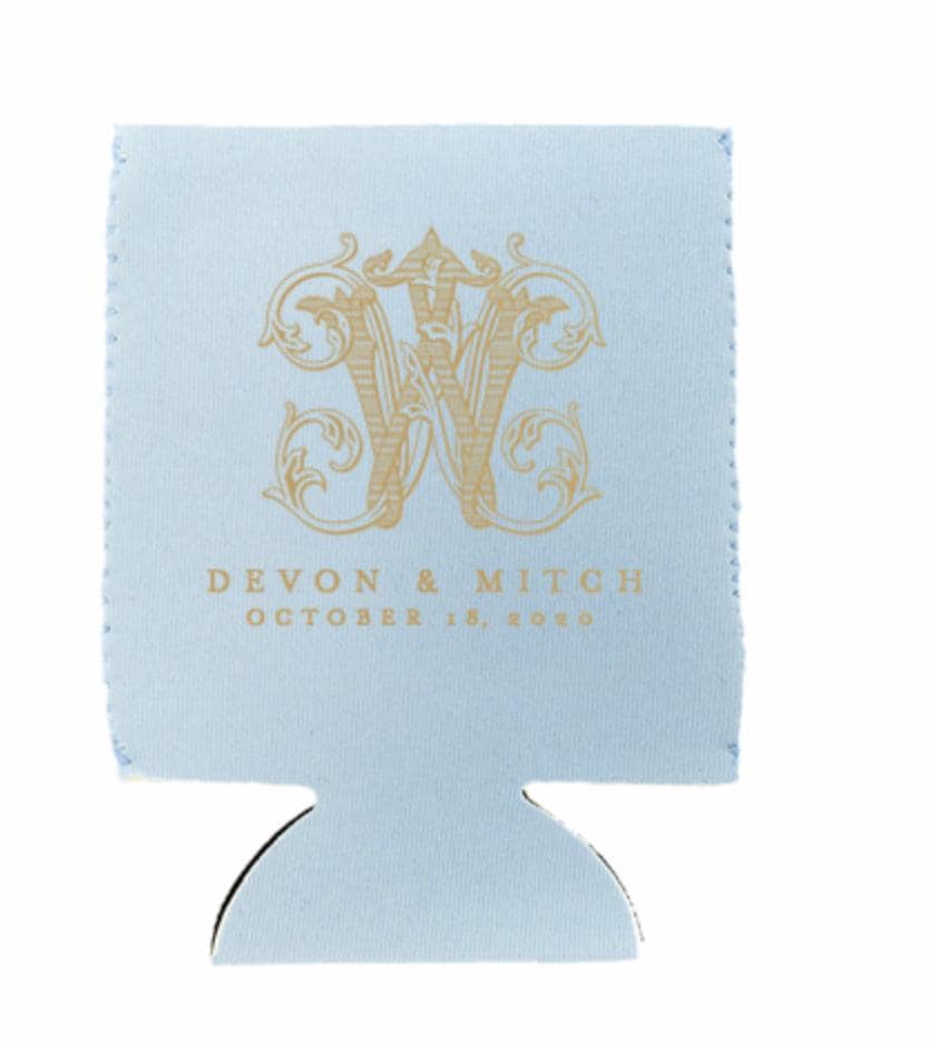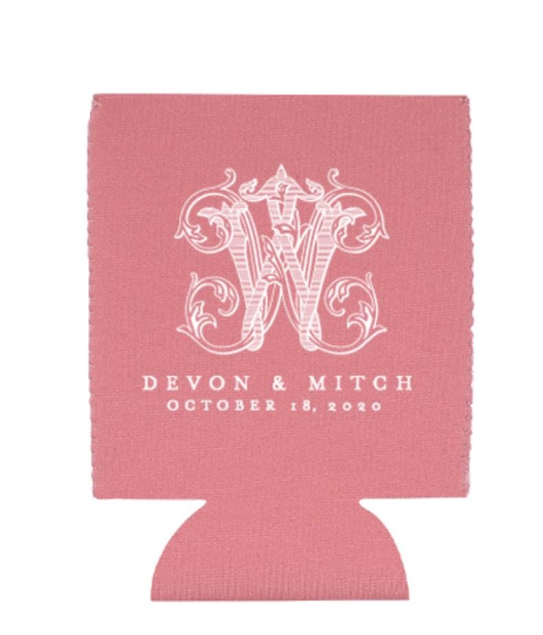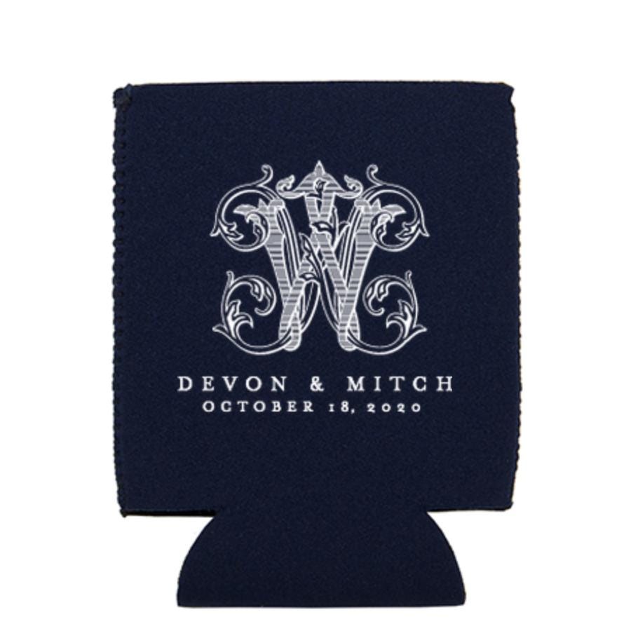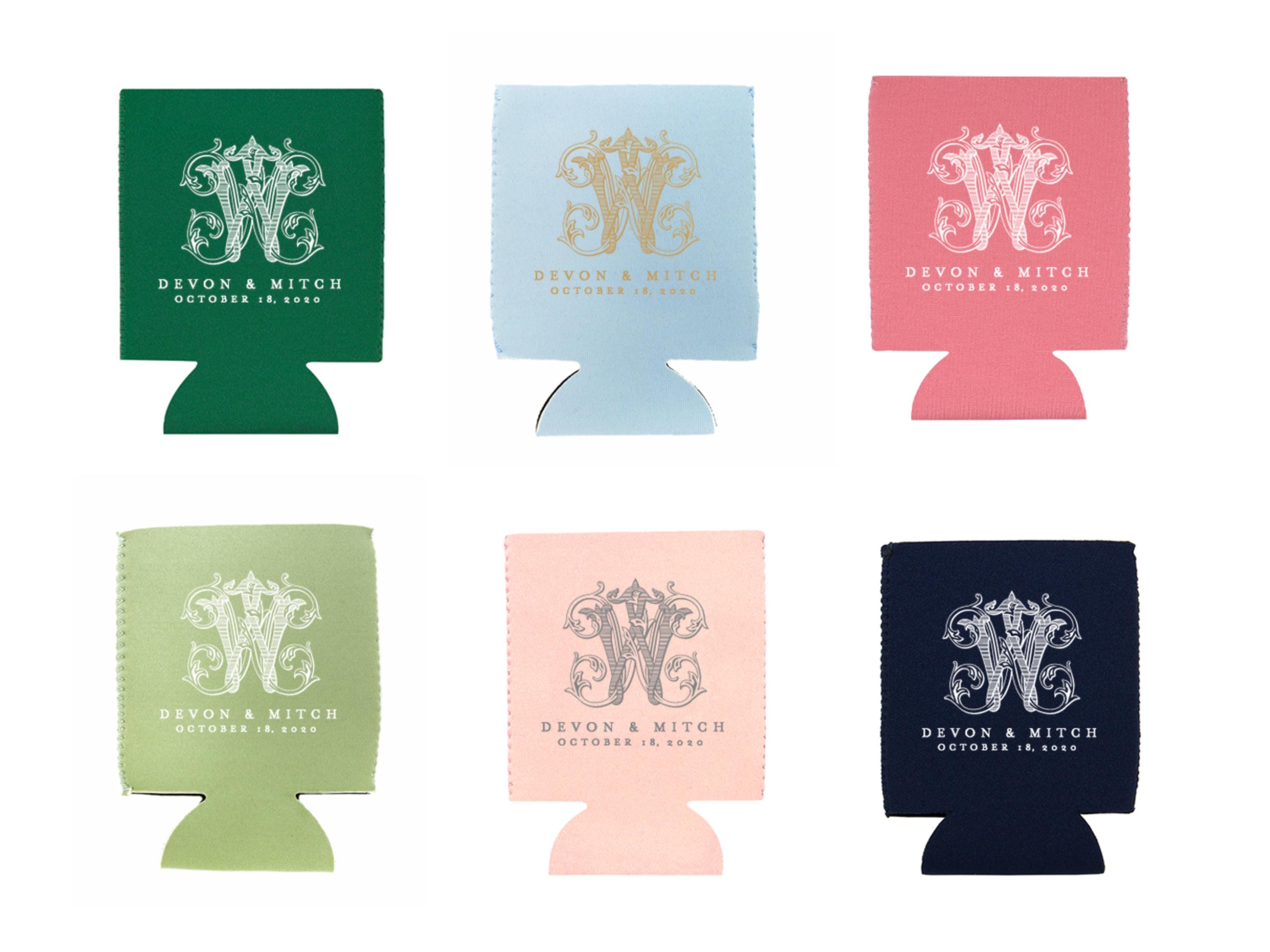 Celebrate in style with our custom wedding can coolers – perfect for keeping drinks cold and guests happy! Featuring an elegant monogram and personalized with your names and date, these koozies are both practical and memorable. Choose from a wide range of colors to match your wedding or party theme.