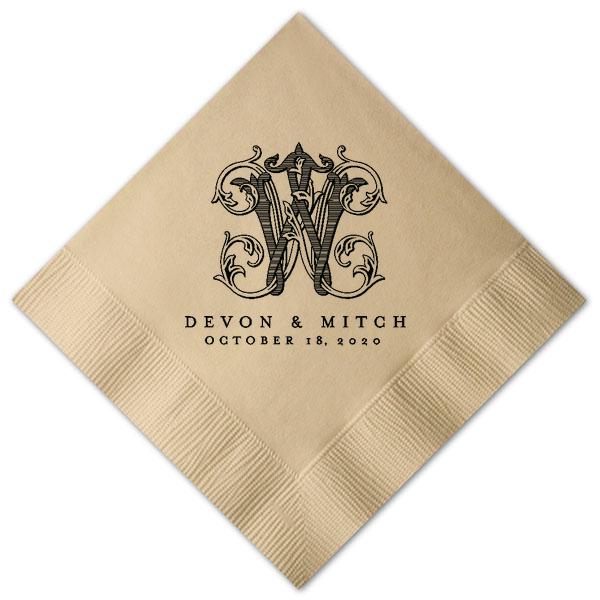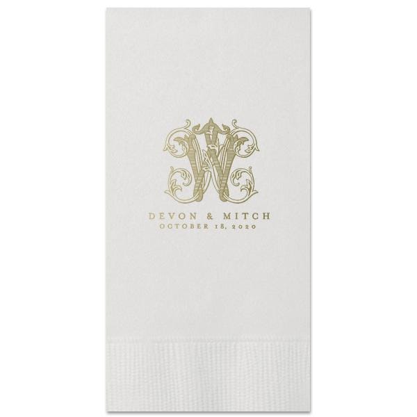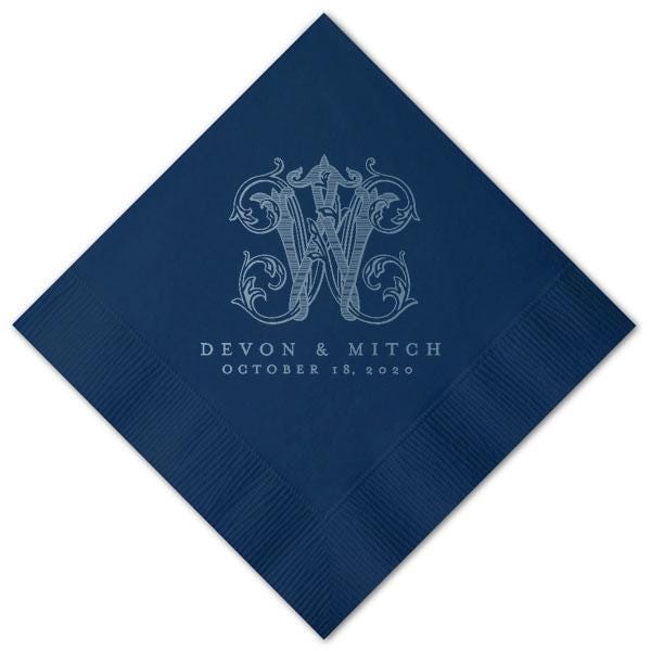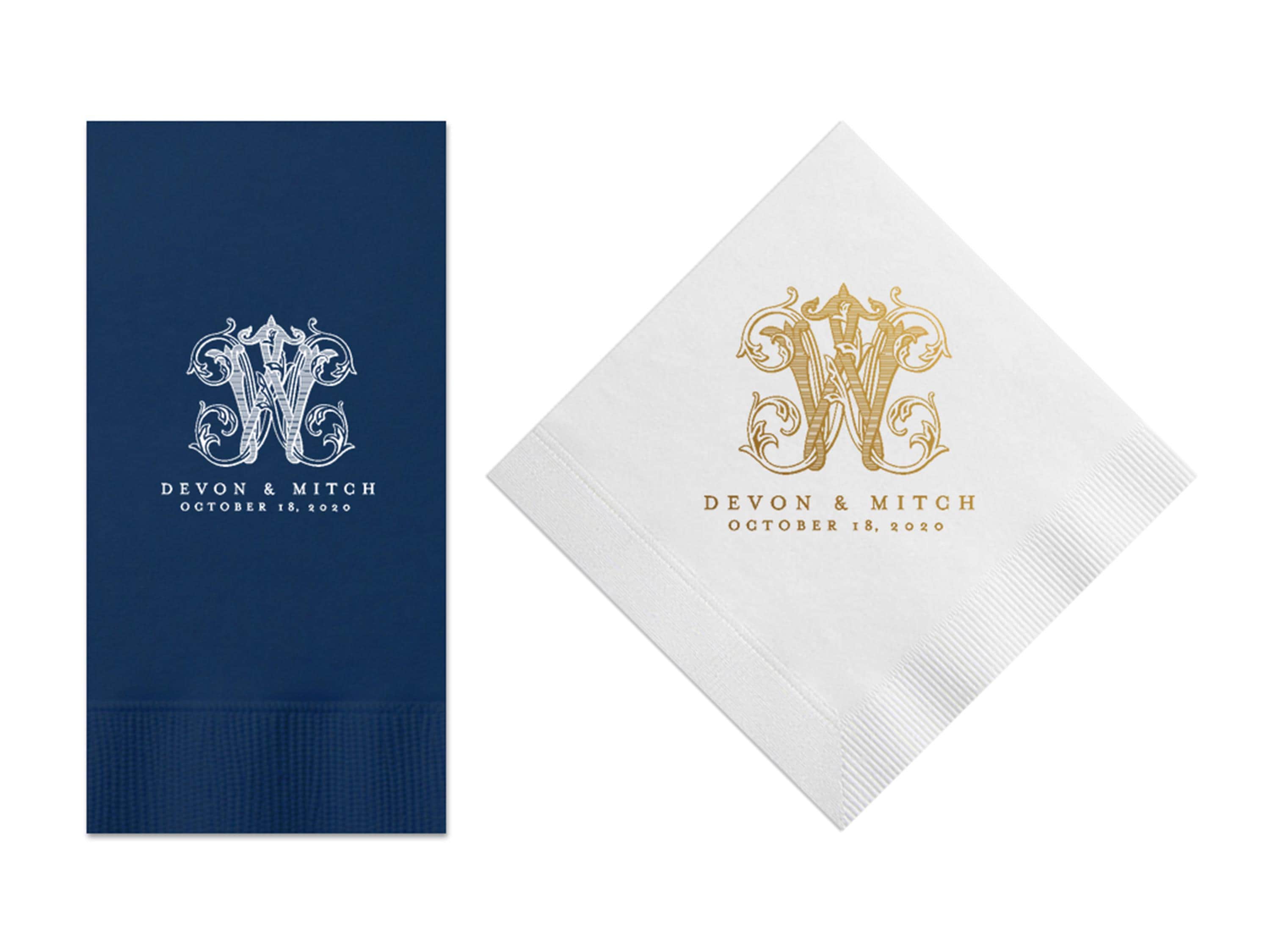 Monogram Napkins and Guest Towels! Custom napkins make a wonderful personalized addition to any rehearsal dinner, wedding reception, engagement party, or milestone anniversary! Choose your color napkin, writing and personalize with your own special message!