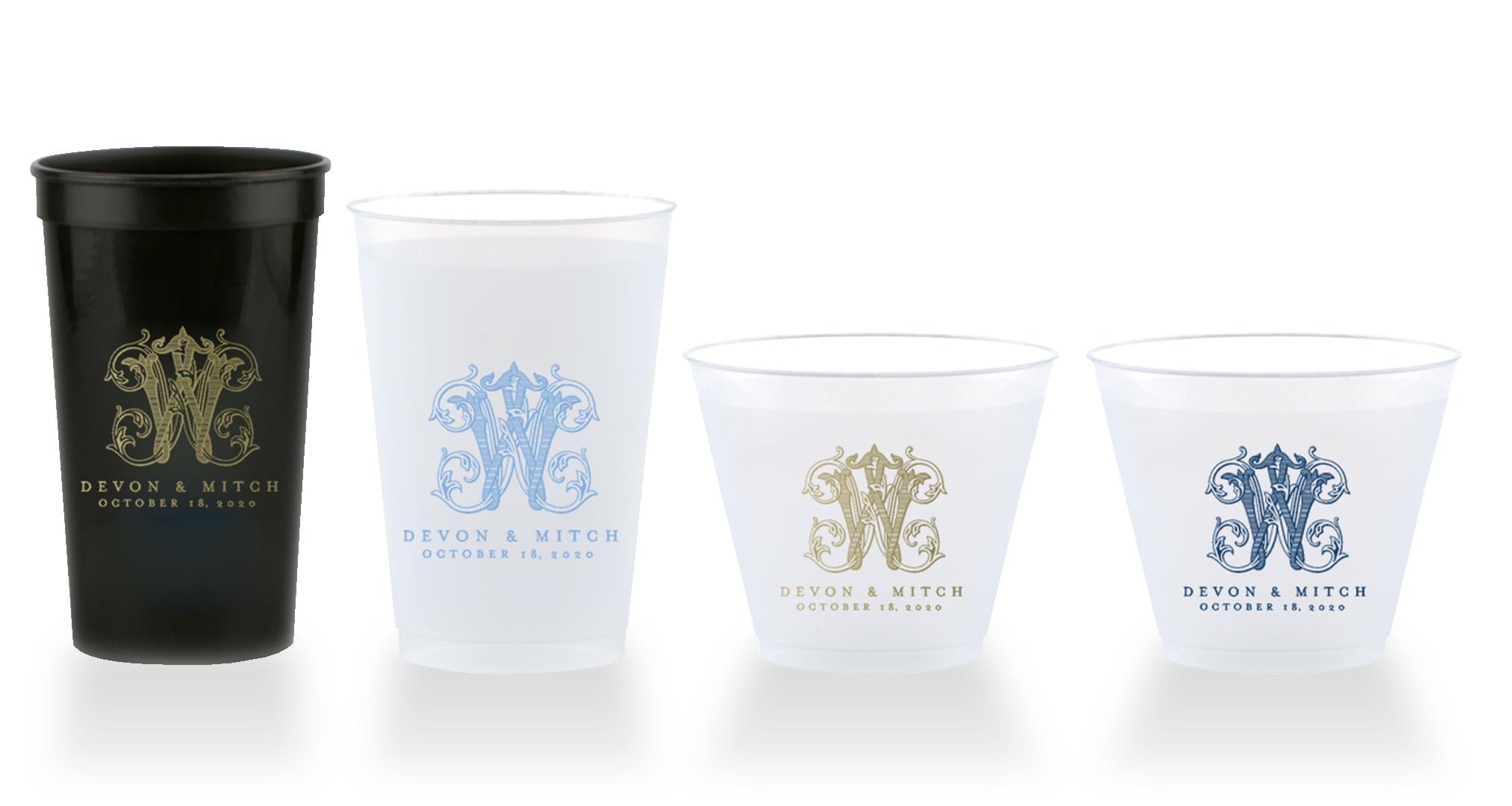 Monogram Wedding Frosted Cups, Custom Wedding Favors, Personalized Party Decoration, Wedding Reception, Shatterproof Plastic Cups