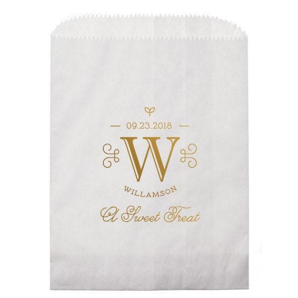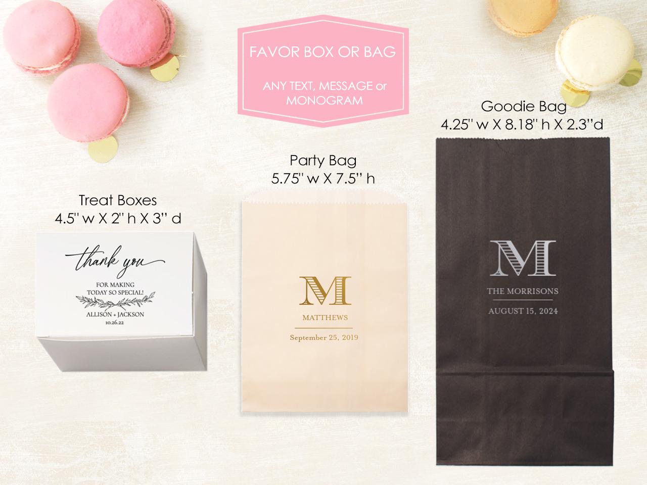 Donut bags custom printed for your are the sweetest way to treat wedding guests to a tasty and memorable favor. Choose your bag color, wording and ink color!
