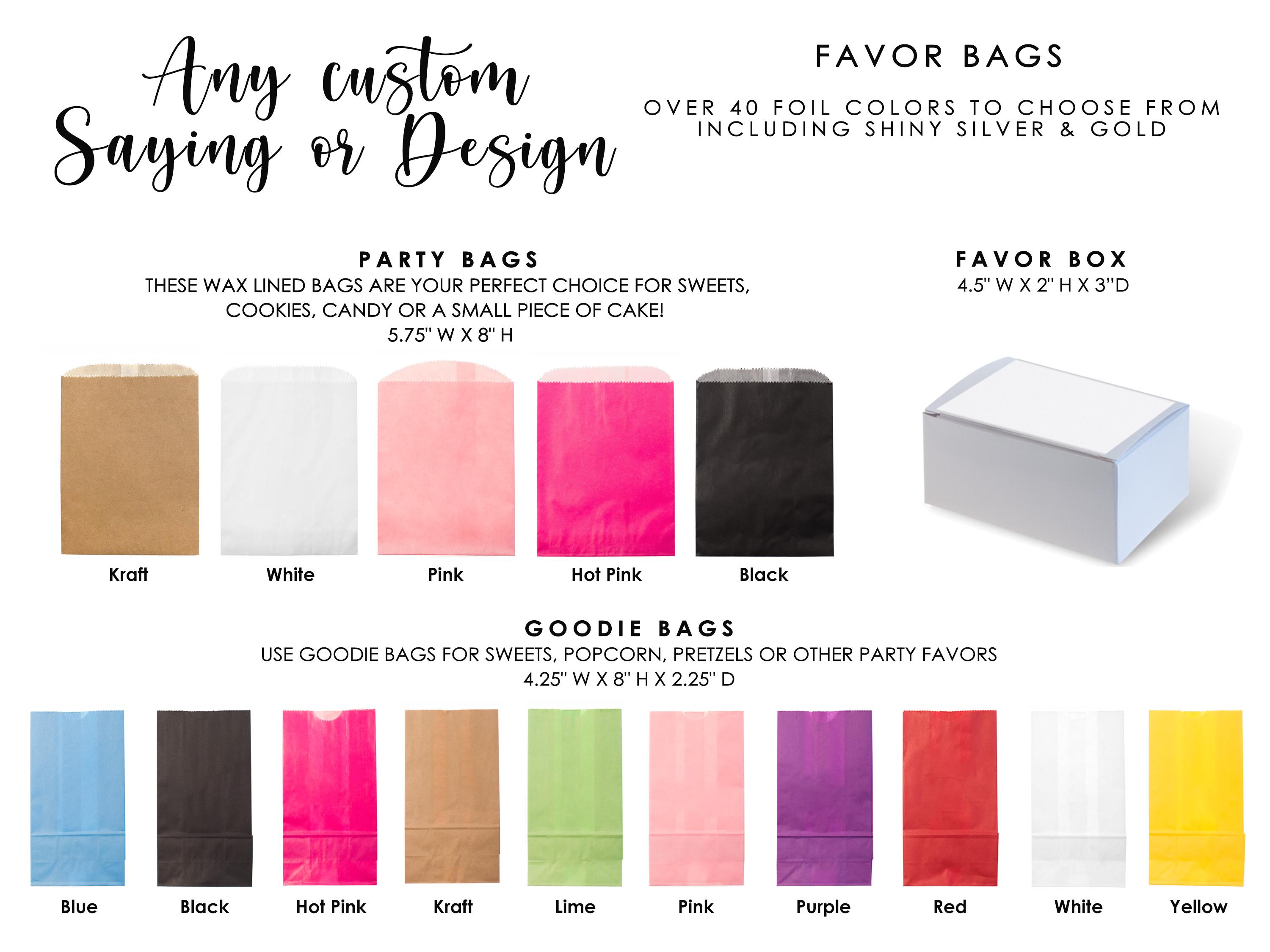 If you have any questions regarding these party bags or would like a different quantity or have a custom request, please hit the “Ask a Question” button next to the price and I will get back to you shortly!